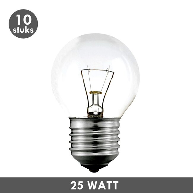 Kogellamp van 25 Watt in helder glas met een E27 grote fitting.